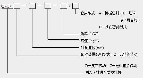 CPJ型側(cè)入式皮帶攪拌機(jī)由電機(jī)、皮帶盤、機(jī)架、機(jī)械密封、堵漏裝置、攪拌軸、攪拌器等組成。根據(jù)密封方式可分為:A型:機(jī)械密封,B型:填料密封,C型:其它密封方式,可適用于不同密封要求的場合。安裝方式為臥式安裝,也可根據(jù)現(xiàn)場工藝條件調(diào)整安裝方式。