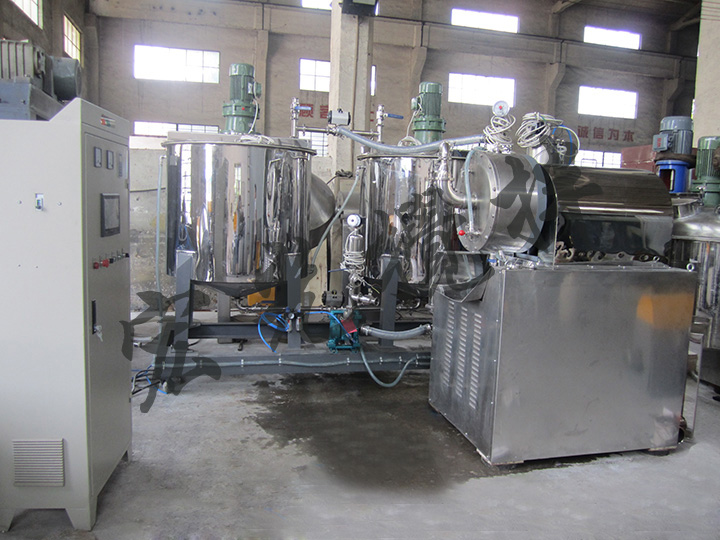 加料泵將預分散的材料送人研磨桶,研磨筒內(nèi)裝有研磨介質(zhì),磨細后的物料經(jīng)動態(tài)分離器排出,視產(chǎn)品細度不同,可采用單臺連續(xù)或多臺串聯(lián)連續(xù)研磨工藝。